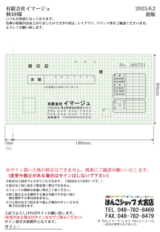ご承認いただいたもので作成しますので文字の一字一句すべて目を通してご確認お願いします。