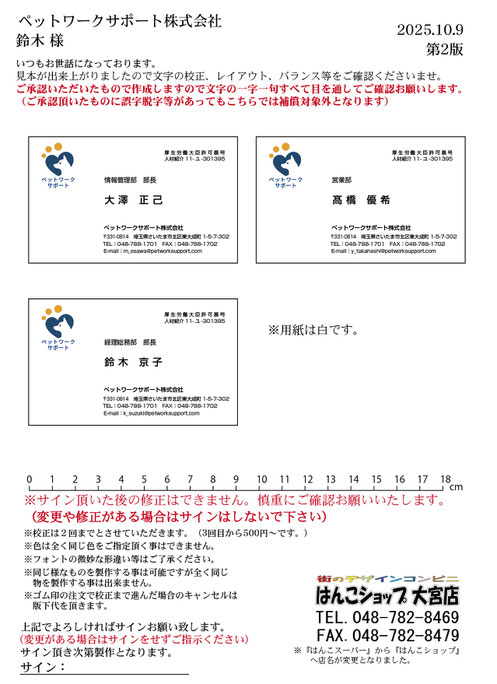 ご承認いただいたもので作成しますので文字の一字一句すべて目を通してご確認お願いします。