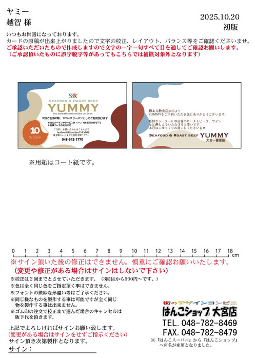 ご承認いただいたもので作成しますので文字の一字一句すべて目を通してご確認お願いします。