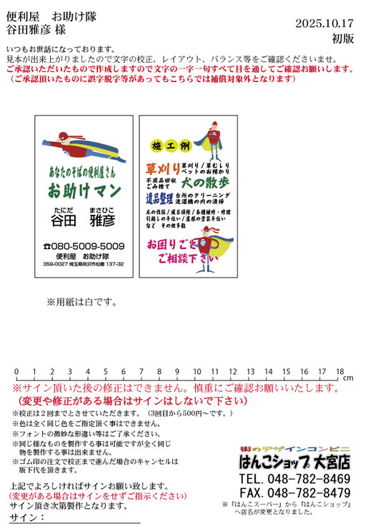 ご承認いただいたもので作成しますので文字の一字一句すべて目を通してご確認お願いします。