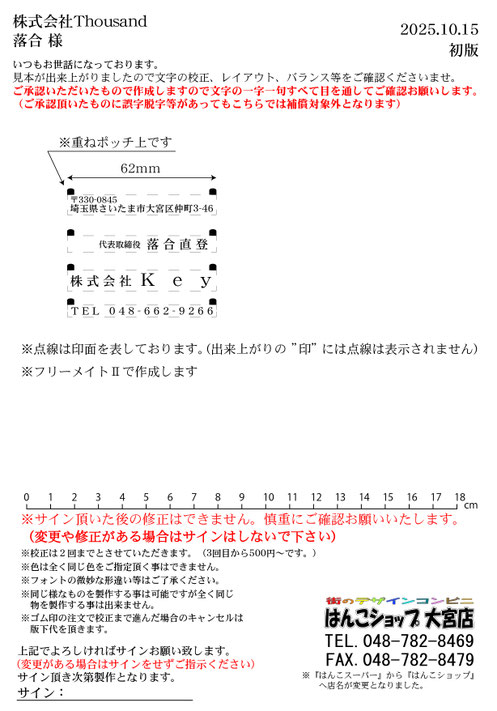 ご承認いただいたもので作成しますので文字の一字一句すべて目を通してご確認お願いします。